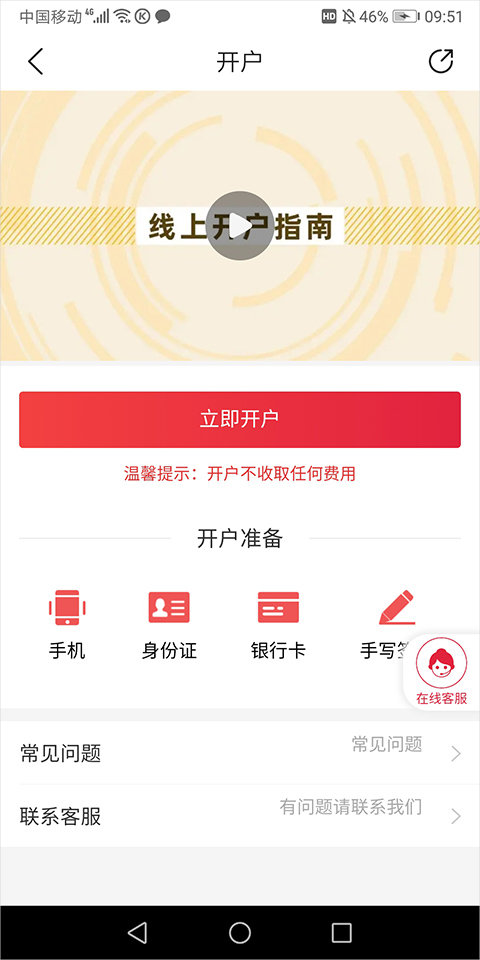 开户时间交易日08:45-17:45;周末/晚上等非开户时间点击“在线开户",进入预约开户界面,提交您的预约申请,开户专员将在交易日第一时间联系您