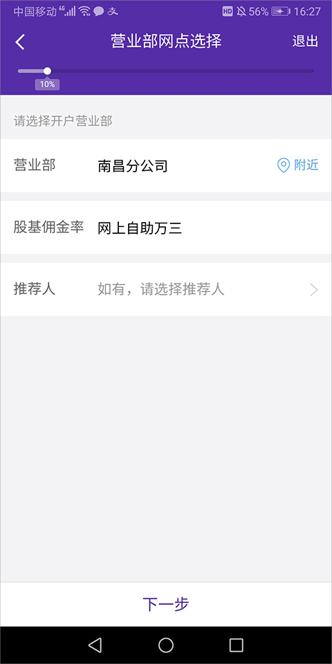 然后选择证券营业部,可以点击【附近】自动匹配到用户最近的证券营业部