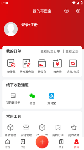 1、进入再塑宝官方版软件,首页可以看到很多功能,例如再塑超市、再塑求购、线上卖货等,