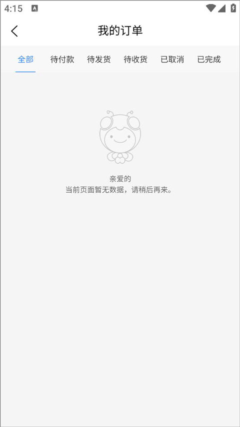 3、打开订单页面,选择需要退货的订单(我这里是没有需要退货的订单);