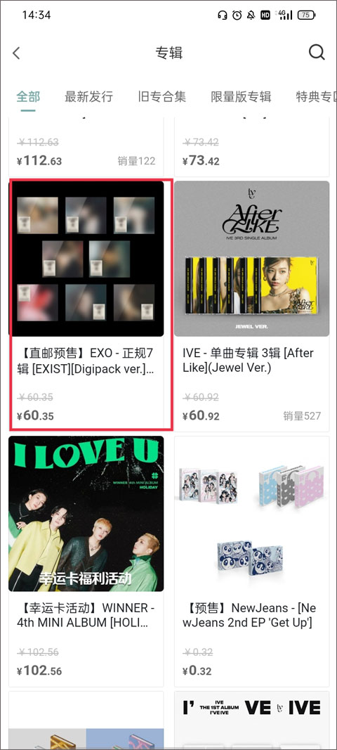 2、你可以根据专辑的类别来找到你喜欢的偶像专辑,也可以通过搜索功能找到,找到之后点击专辑的展示页面。
