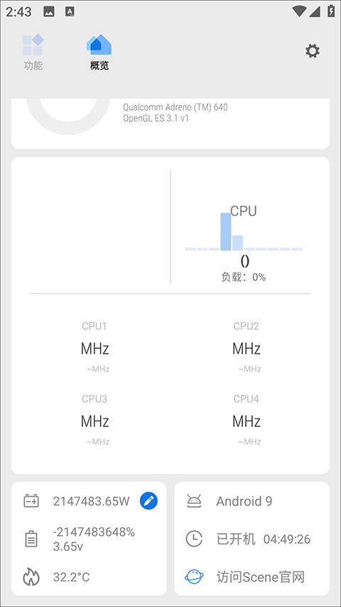 1、基础模式:无需 Root 权限即可使用部分查看功能,包含功能模块(帧率记录、充电统计等)和概览模块(物理内存、CPU 运行等),适合普通用户快速了解手机状态。
