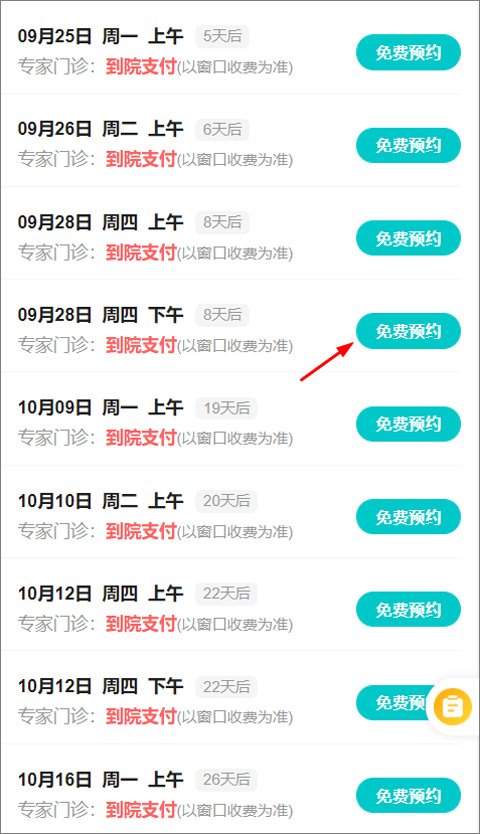 3、用户选择科室后进入医生页面,可以选择专家医生挂号,也可选择普通医生挂号,点击医生右侧的预约;