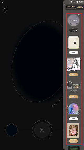 2、点击下图所示中右下角星星和月亮的那个图案可以切换滤镜