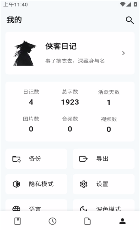 侠客日记app是一款完全免费,功能齐全的日记软件,界面简洁,无广且操作简单。它不仅提供了基本的文字记录功能,还能记录天气、心情和位置等细节信息,让每一次记录都更加生动具体。还具备强大的编辑功能,能够自动计算全文字数、插入表格、添加超链接、图片、视频等,满足用户多样化的记录需求。同时,它还支持txt、md、json、xlsx 等多种导出格式,方便用户将日记内容分享或备份。此外,侠客日记app还自带隐私模式,用户可以将不想被他人发现的内容设置为私密,只有输入密码才能查看,安全感满满。有需要的用户可以在本站下载使用~