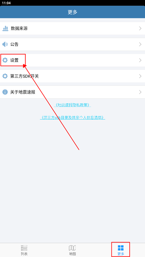 1、进入app,在“更多”页面,点击“设置”;