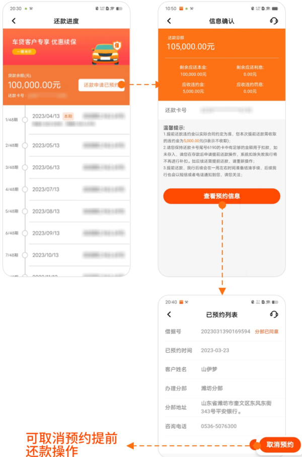 4、客户可进入“还款进度”页面,查看已预约的时间,如有需要可取消预约