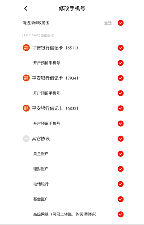 5、在打开的新页面中确定修改手机号时所使用的权限范围