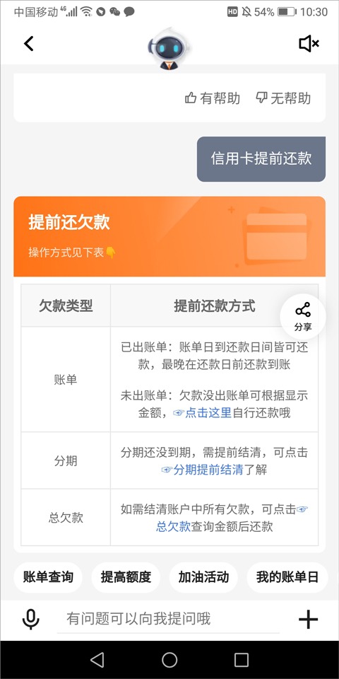 用户可以进入客服页面,输入信用卡还款后选择还款类型,接着按照客服指引进行操作即可