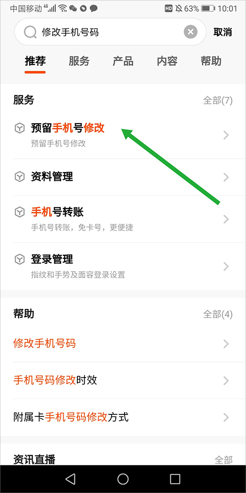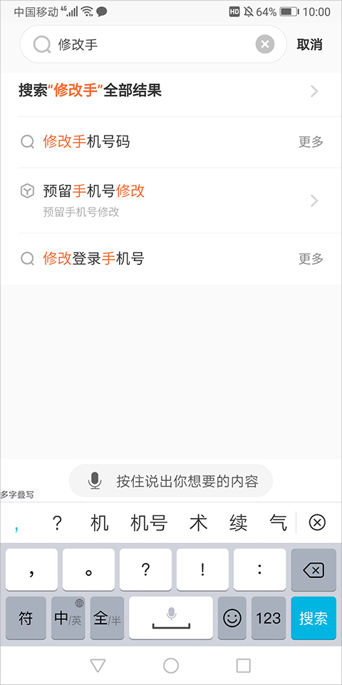 2、在输入框中输入“修改手机号”