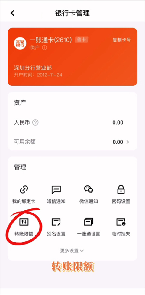 3、在打开的新页面中点击【转账限额】