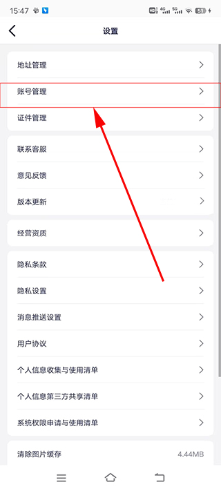 2、找到“账号管理”点击进入