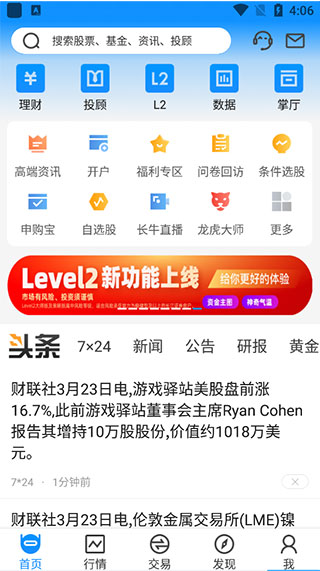 5、丰富的投资资讯:金牌投资顾问实时服务、每日龙虎榜、大宗交易、第一手交易信息,投资圈内应有尽有