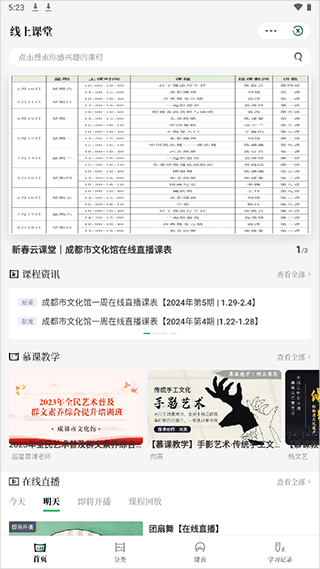 1、用户进入应用首页后点击【线上课程】