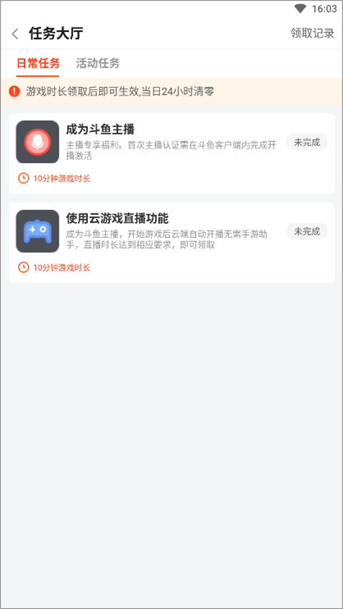 2、使用云游戏直播并完成相应任务,都可以增加一定的游戏时长。