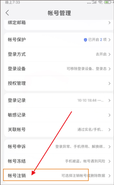 4、进入账号管理以后,我们一直往下找到“账号注销”。