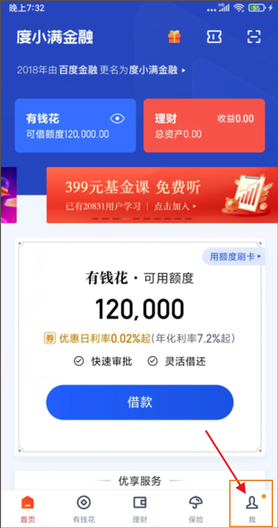 1、打开百度钱包(度小满金融)手机软件,点击页面右下角的“我”。