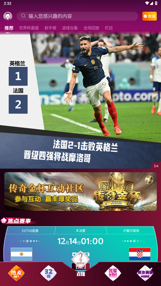 另外,卡尔塔世界杯也开始了,如果你是一个足球迷,却又不想错过直播比赛,不妨在手机中安装一个央视体育直播app,让你随时随地都能够观看足球!
