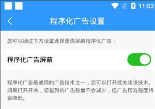 4、然后我们关闭程序化广告屏蔽,广告的精度就会减少了。