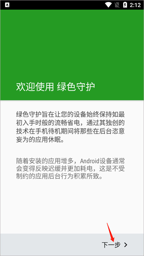 1、打开绿色守护谷歌play捐赠版,点击下一步