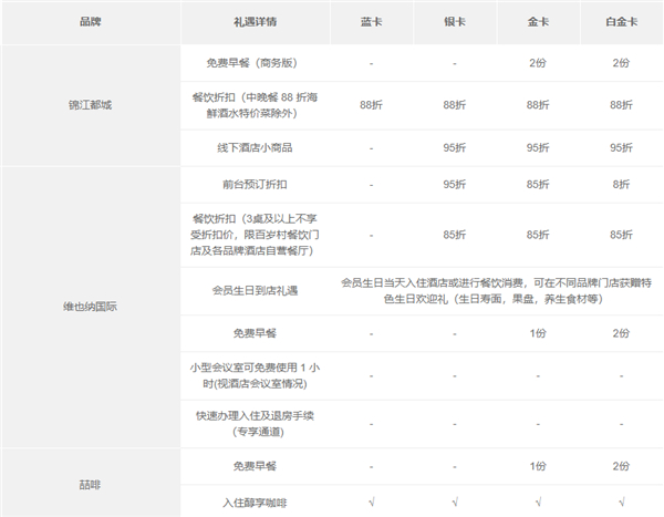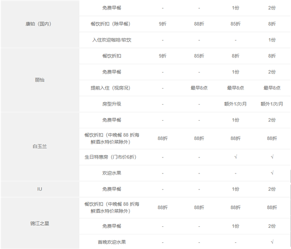 7、客房免费升级(权益明细中有该权益的品牌),需视客房状况并需由成员酒店来认定,仅在会员已是登记入住宾客时提供。