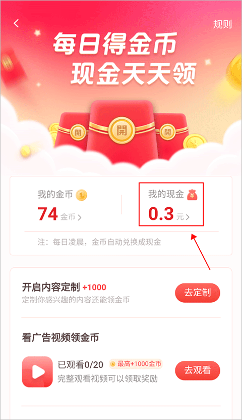 3、领取的金币会在每日凌晨自动兑换成现金,提现到你的微信里。