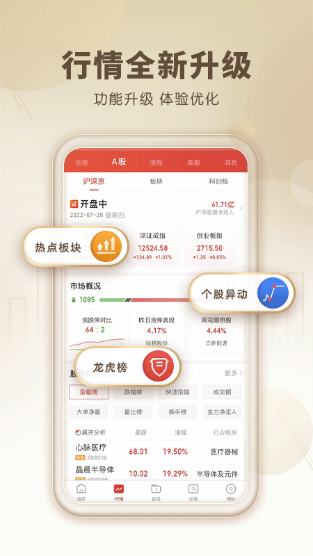 中山赢者同花顺手机版是专门针对android平台而开发的一款手机炒股软件,该软件基于移动互联网技术而开发,将证券行情、交易、资讯等服务资源完整融合在一起,并支持融资融券交易,能够为用户提供安全可靠、及时的股票交易。同时本款中山赢者e股赢手机证券可以完美运行在android1.6-4.4平台上,具备“速度快、品种多、交易全、资讯精”四大特色,是手机炒股必备的app应用。
