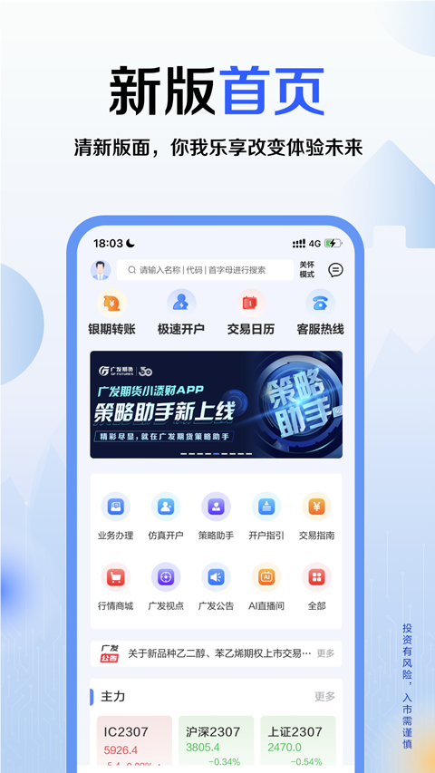 广发期货小添财app是广发证券官方打造的一款集行情、交易、资讯为一体的专业个股期权app,其具有“行情准、咨询全、水平高”三大特点,可为用户提供精准行情数据解析,24小时提供实时行情报价,0.3秒自动更新频率,并支持多品种、多行业动态实时更新,帮助用户市场热点一手掌握。