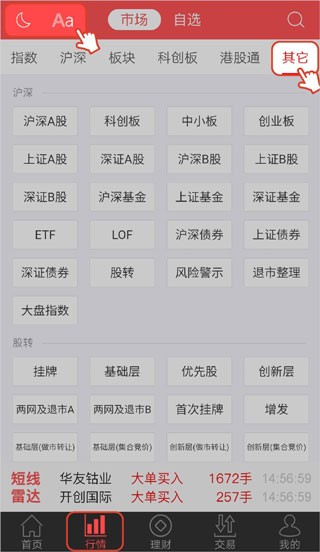 支持多市场的行情显示,涵盖了沪深A股、创业板、科创板、港股通、股转、港股、期货等行情及指数;提供人性化的大字体、小字体选择;提供白天、黑夜两种显示模式,切换方便。