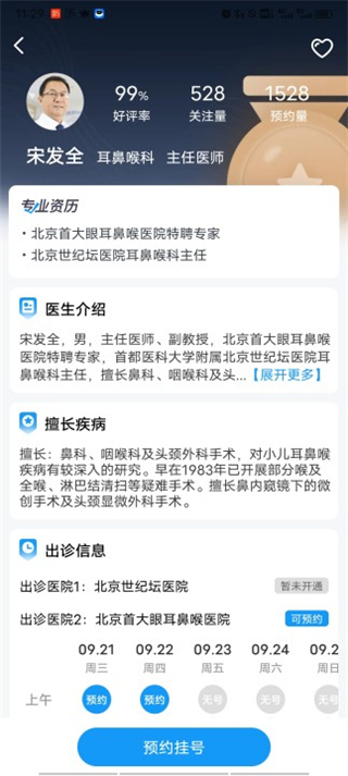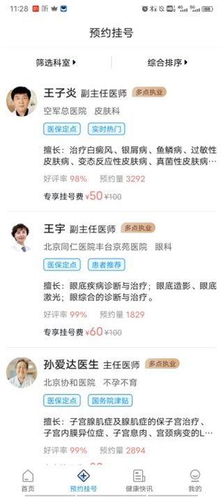 4、各种专家号、主任医师号等等好都可以在软件上提前进行预约