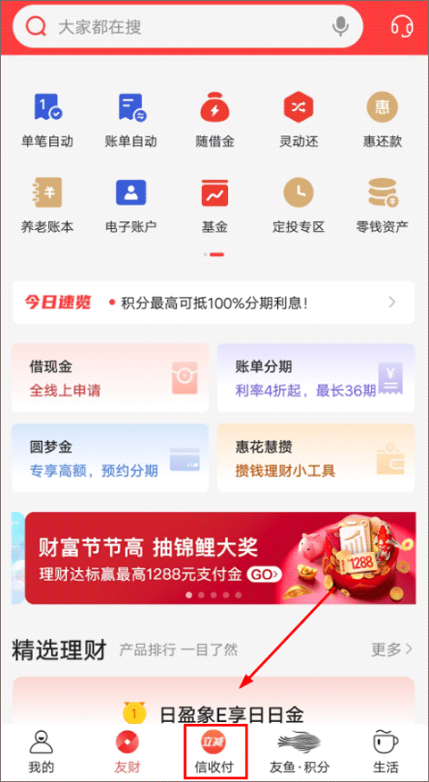 「信收付」扫码支付优惠多,一键即可分期支付;