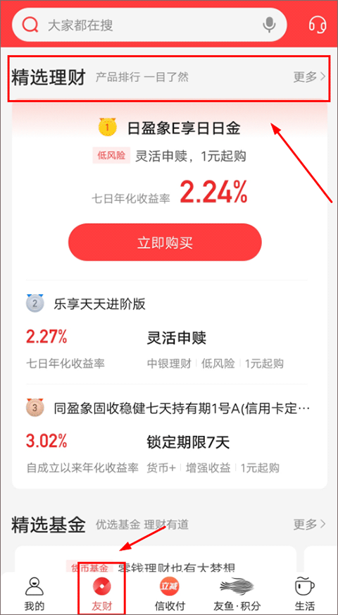 办理路径:动卡空间-友财-精选理财