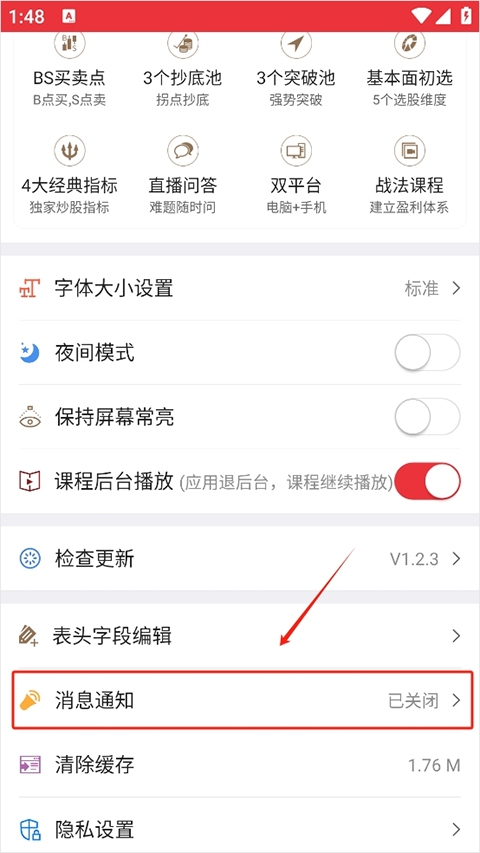 2、然后就可以进入到这个界面,选择“消息通知”。