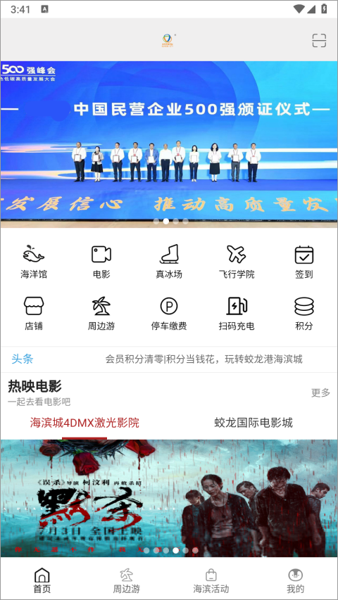 海滨城app是成都海滨城购物中心专用的app,它和线下店铺相连合,在海滨城购物中心的所有消费都能在这款软件里享受到折扣福利,还可以进行积分。这款软件为前去游玩的用户提供了一站式服务,你可以用这款软件查看店铺、提前预约海洋馆、订购电影票、扫码全场充电、一键停车缴费、预约飞行学院和真冰场等等,而且所有消费都能进行积分,你可以用积分当钱花,玩转海滨城。除此之外,这款软件还有海量活动等你参与,有满减活动、节假日优惠、还有大量无门槛大额券等你领取,如果你是海滨城的常客,那一定不能错过这款软件,赶紧来下载体验一下吧!