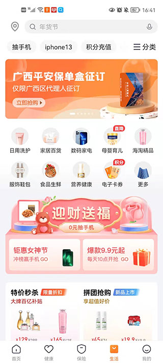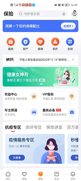 2、【保险】-频道升级构建保险资金区、优化核心服务展示、上线添平安产品+服务、新增本地资讯功能等
