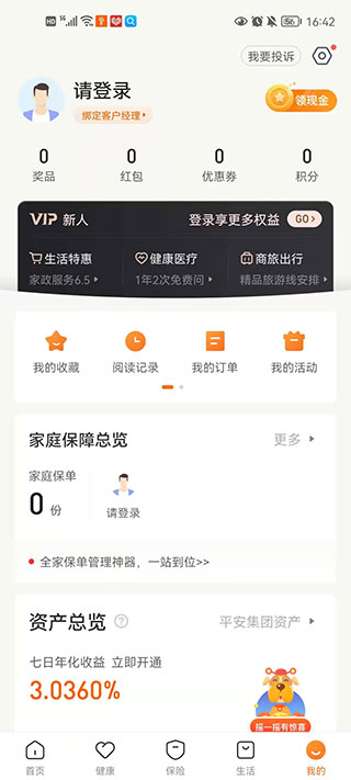 1、打开在本站下载的中国平安人寿保险官网app,在首页中为你提供了公告,推荐产品,还有便捷的常用的旺财,续期宝,问一声,进圈子,我的活动,我的产品等便捷服务。