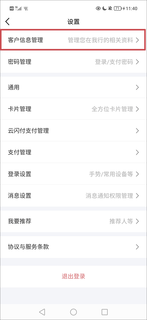 2、在设置界面找到并点击“客户信息管理”选项,进入客户信息界面;