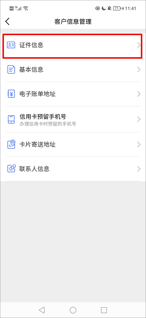 3、然后在客户信息管理界面中找到并点击“证件信息”选项;