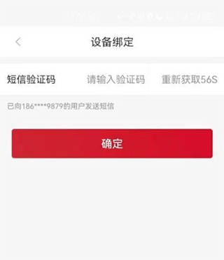7、界面转到“设备绑定”,在“短信验证码”一栏输入手机号收到的验证码,再点击“确定”,即成功完成手机银行的自助注册。