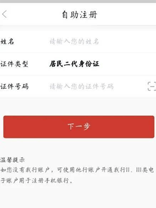 2、填写注册客户的正确“姓名”和“证件号码”,完成后点击“下一步”,按照屏幕提示步骤进行人脸识别。