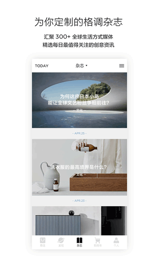 时尚、家居、旅行、数码、工具、玩具、美容、孩子、宠物、饮食、运动、文化、画廊、古着,围绕你的一切物品都在传达你的生活态度。
