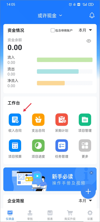 1、同样还是在主页面上,点击左上方的“收入合同”。