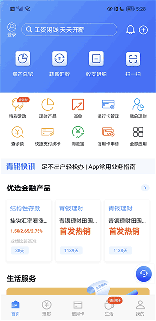 1、资产总览:查询活期、存款、理财、信用卡、贷款,提供直观、清晰的资产负债全局视图。