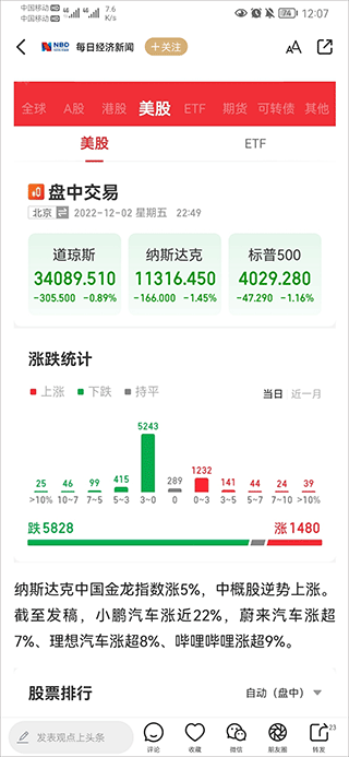 4、最后就可以查看到今日美股的走势图啦