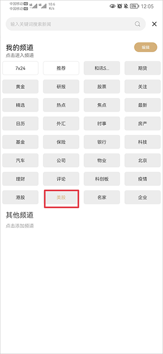 2、进入后点击美股