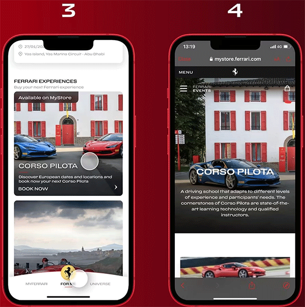1、要进入MyStore 平台,请单击MyFerrari App主页中的FOR ME 按钮。