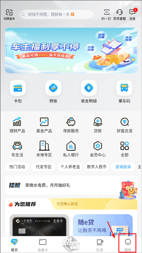 1、首先打开江苏银行手机银行,登录账号后点击卡包,选择添加银行卡;