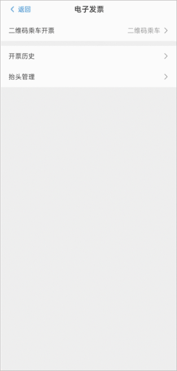 进入电子发票页面后,点击「二维码乘车开票」,进入订单选取页面。