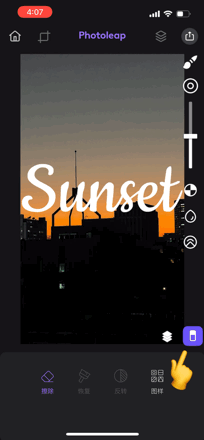 1、打开 Photoleap,导入需要做遮罩效果的背景图,在右侧的图层管理区域新增「文本」图层。