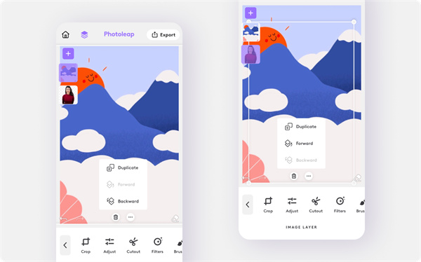 通过进一步调整,使用Photoleap将您的图像提升到一个新的水平。点击每一层以探索滤镜、涂鸦、润饰和效果。该应用程序非常直观,使编辑过程轻松愉快。